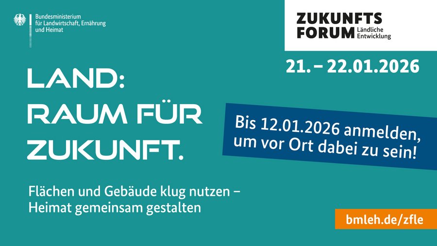 Mit dem Zukunftsforum Ländliche Entwicklung bietet das Bundesministerium für Landwirtschaft, Ernährung und Heimat (BMLEH) seit 2008 eine Plattform für Diskussion, Wissenstransfer und Austausch darüber, wie ländliche Räume attraktiv und zukunftsfähig gestaltet werden können. Das 19. Zukunftsforum Ländliche Entwicklung soll am 21. und 22. Januar 2026 in Berlin stattfinden und sich dem folgenden Generalthema widmen: