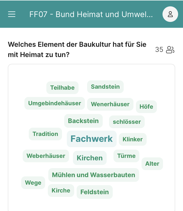 Partizipative Formate wie das Kulturerbe-Parlament und der Heritage Slam zeigen auf, wie Bürgerinnen und Bürger gemeinsam Baukultur bewahren und weiterentwickeln können. Der Bund Heimat und Umwelt (BHU) engagiert sich gemeinsam mit den Denkmalnetzen in Deutschland für die Verbindung von Tradition und Innovation und macht das Potential von Baukultur für Lebensqualität und nachhaltige Entwicklung ländlicher Räume sichtbar.